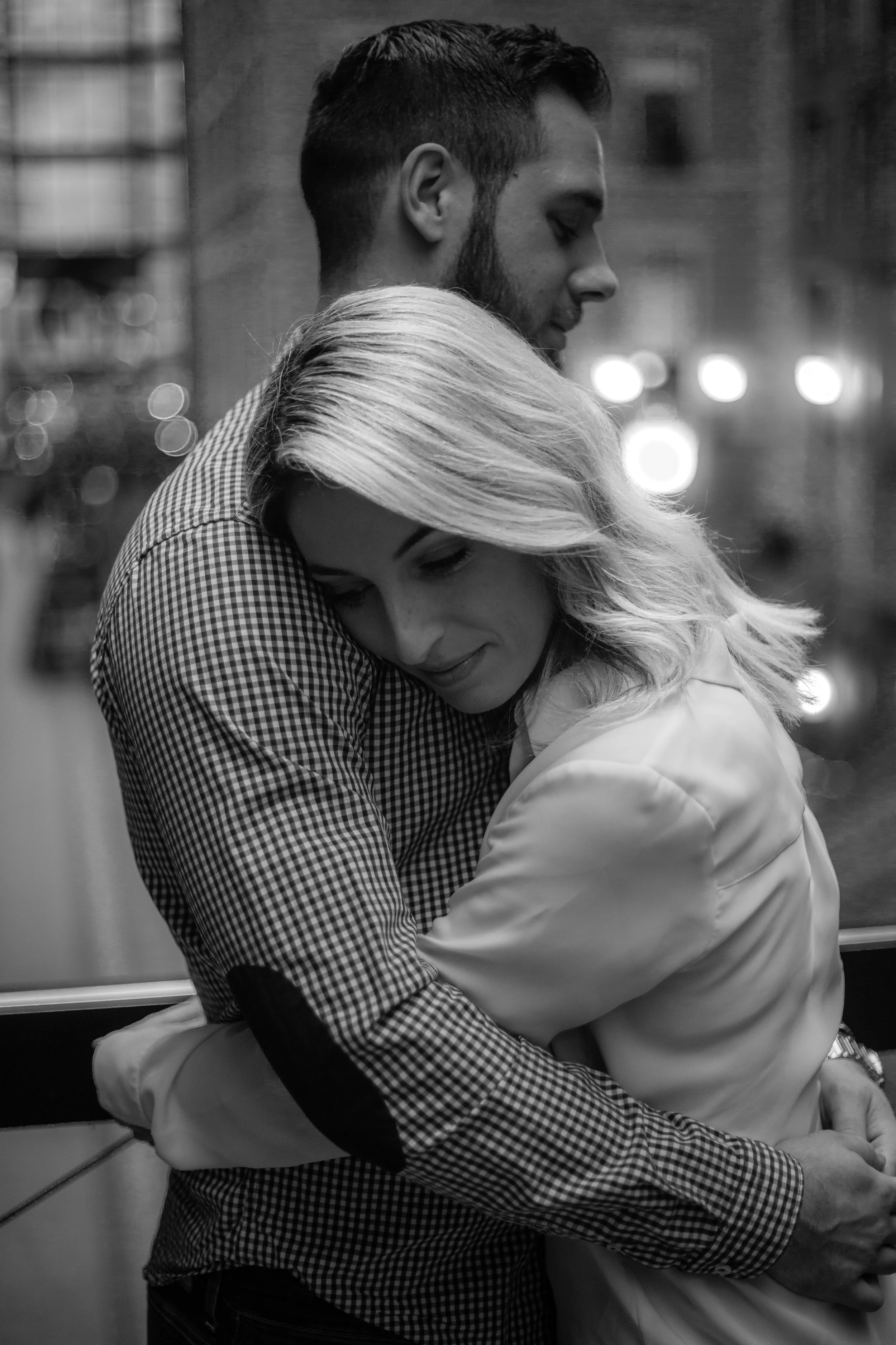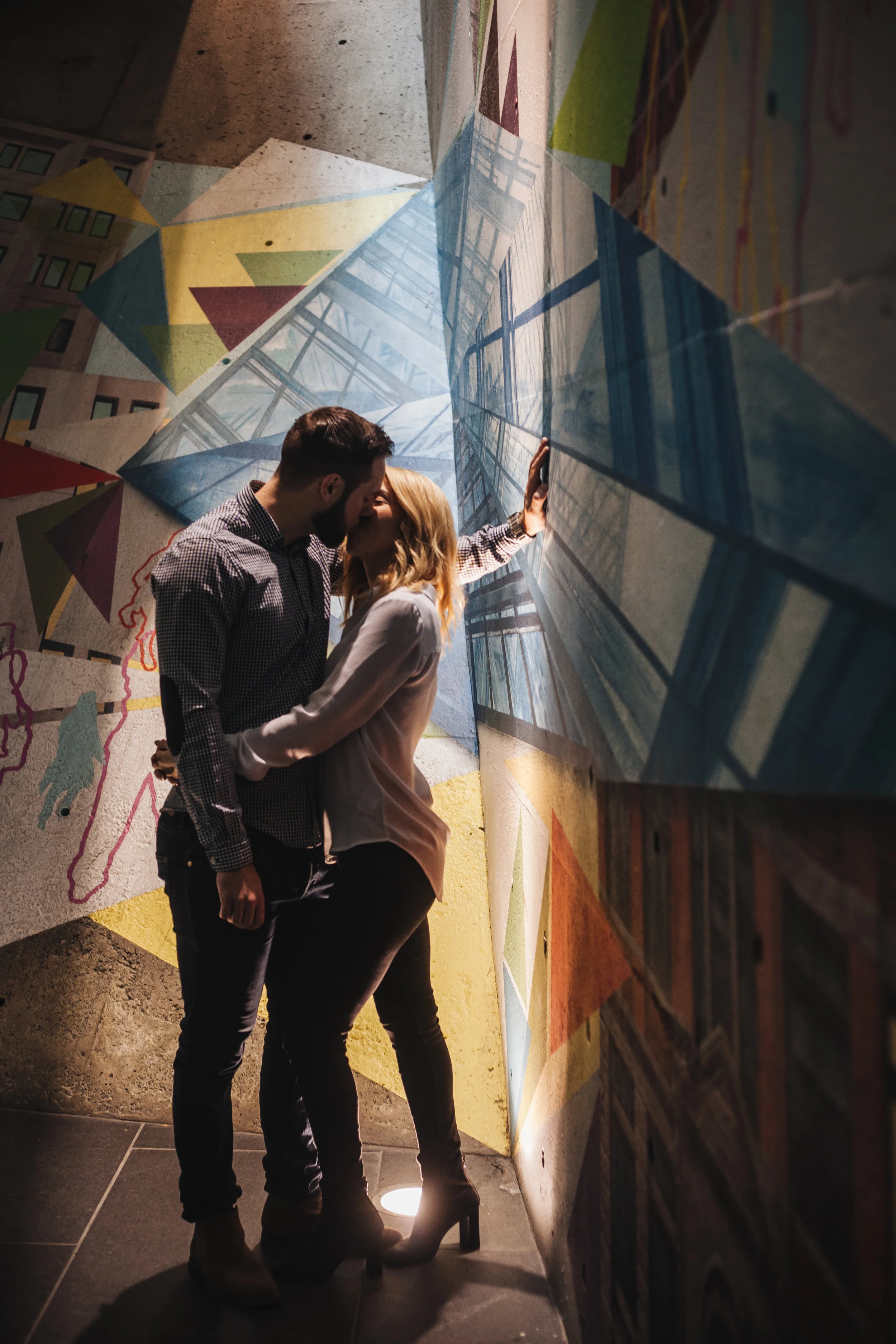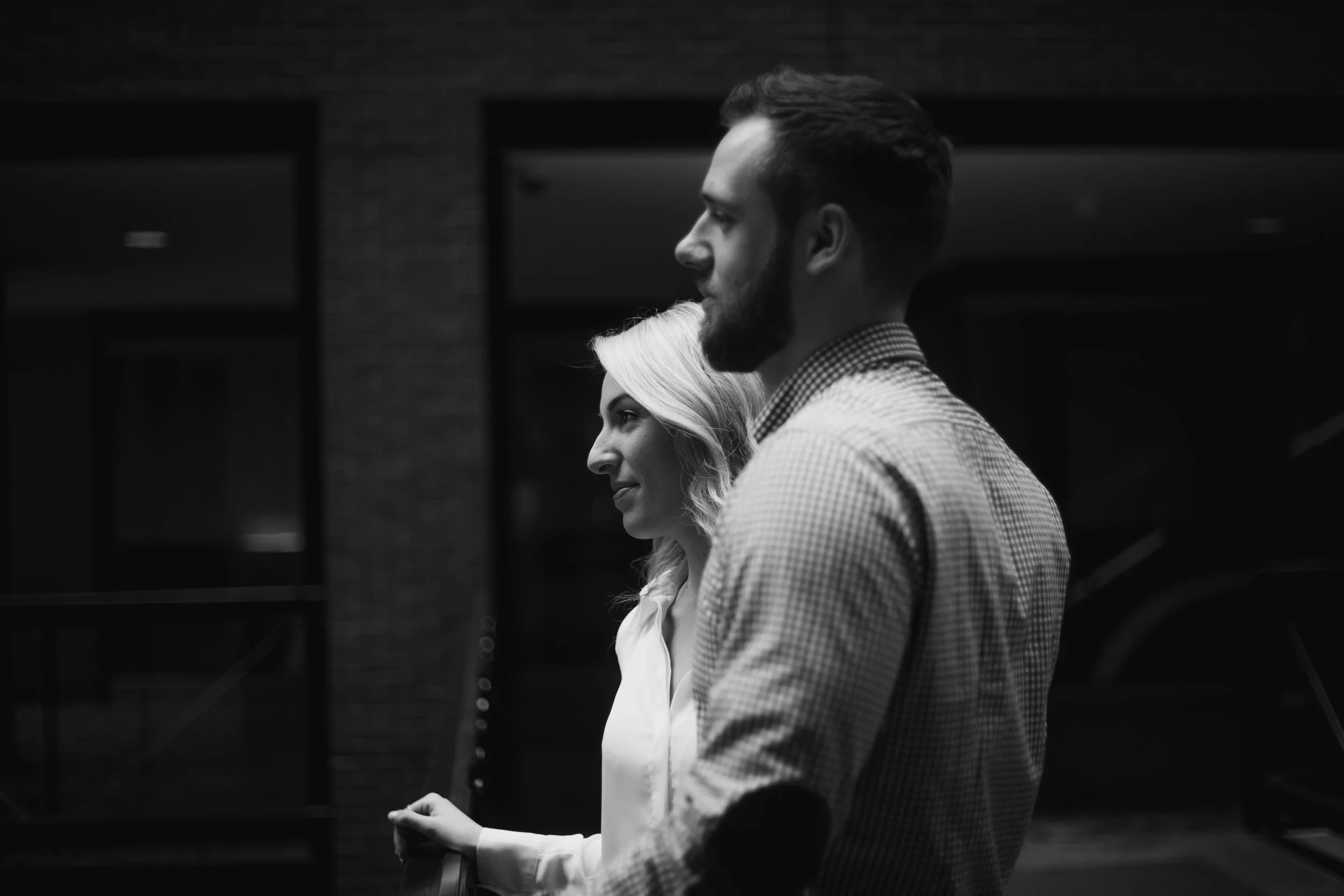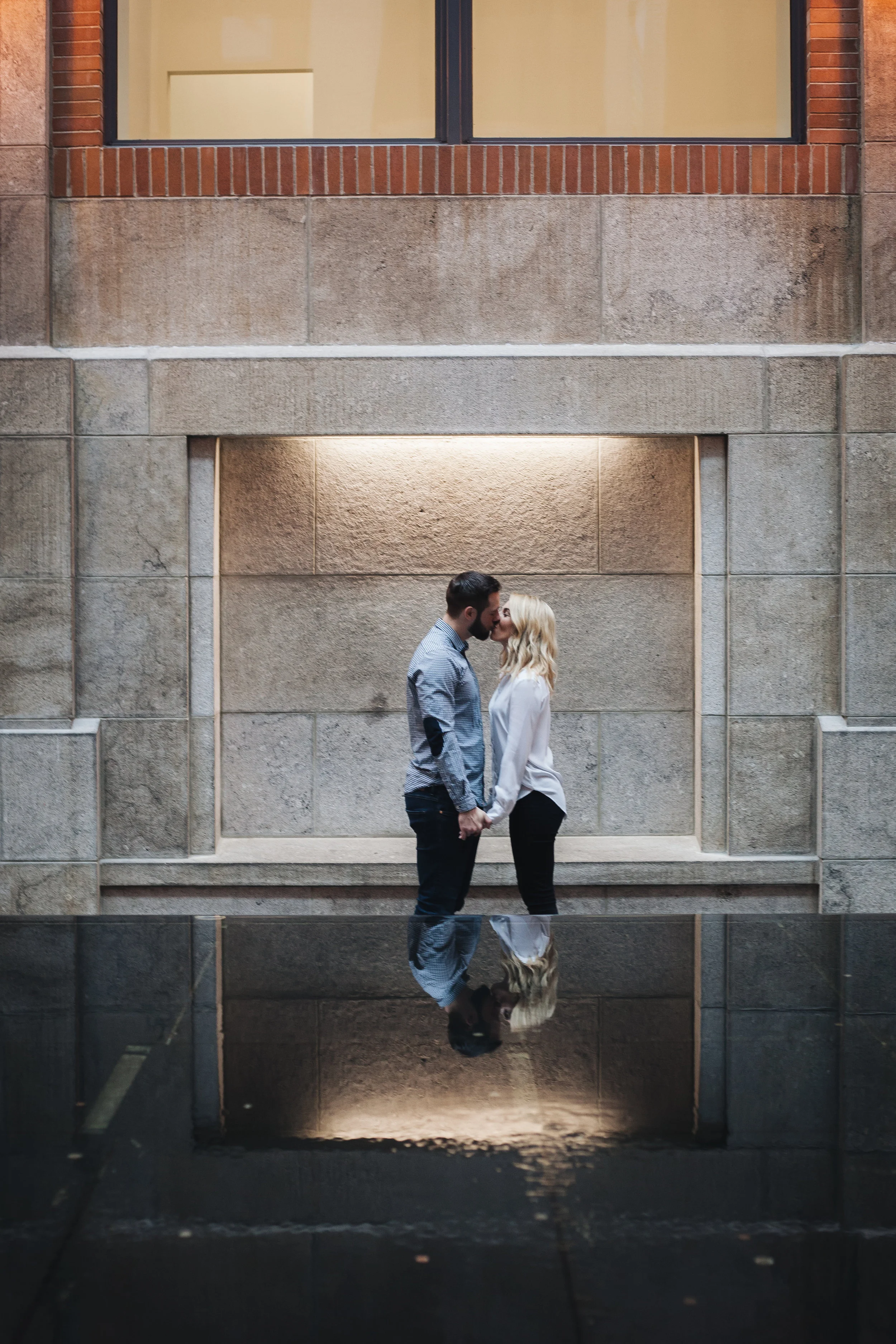 It was a rainy day at the end of April here in Montreal. Katherine and me scheduled the love story session with her fiance Jonah for that day, and in order to avoid the rain, we met up at the World Trade Centre in the Old Port.